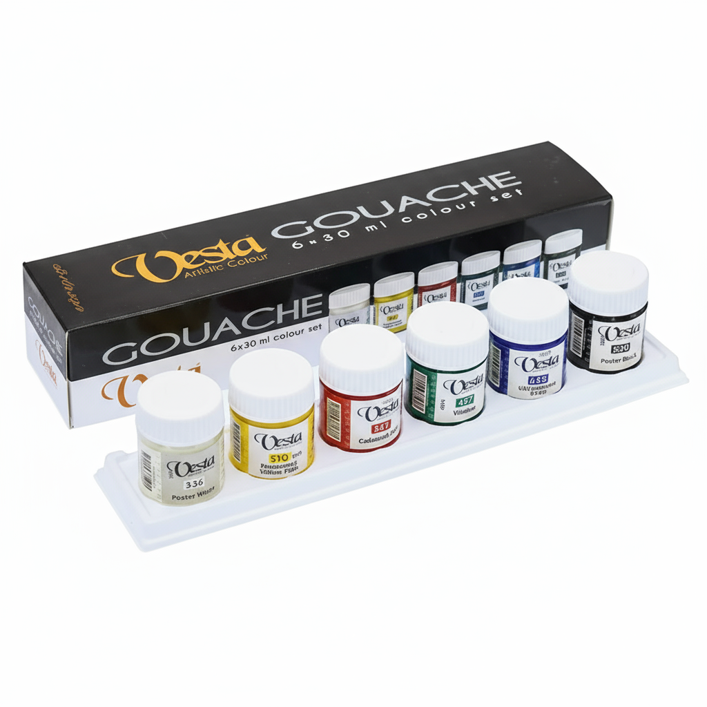 گواش وستا (Vesta) یک برند ایرانی شناختهشده است که به دلیل قیمت مناسب و اقتصادیاش محبوبیت زیادی دارد. این محصول عمدتاً در رده دانشآموزی (Student Grade) قرار میگیرد و گزینهای عالی برای هنرجویان، مبتدیان و انجام تمرینهای درسی محسوب میشود. با توجه به قیمت اقتصادی، پوشانندگی قابل قبول و تنوع رنگی مناسبی را ارائه میدهد. وستا انتخابی هوشمندانه برای کسانی است که میخواهند با هزینهای کم، کار با گواش را شروع کرده و تکنیکهای اولیه را تمرین کنند.