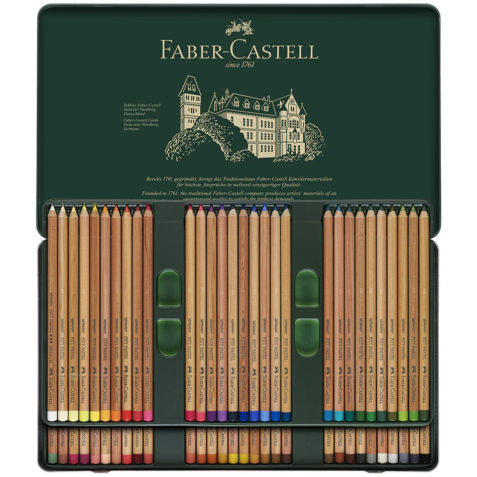 پاستل مدادی فابر-کاستل (Faber-Castell PITT Pastel Pencils) یک ابزار هنری حرفهای است که در واقع، پاستل گچی فشرده و باکیفیت را در بدنهی چوبی یک مداد جای داده است. این طراحی به هنرمند اجازه میدهد تا با کنترل کامل و بدون کثیفی معمولِ پاستلهای سنتی، به ترسیم جزئیات دقیق بپردازد. این مدادها دارای پیگمنتهای بسیار غلیظ، قابلیت ترکیب و محوکنندگی فوقالعادهای هستند و از مقاومت نوری بالایی برخوردارند. به همین دلیل، این ابزار برای پرترهنگاری، اسکیسهای سریع و افزودن جزئیات به نقاشیهای پاستل گچی بسیار ایدهآل است.